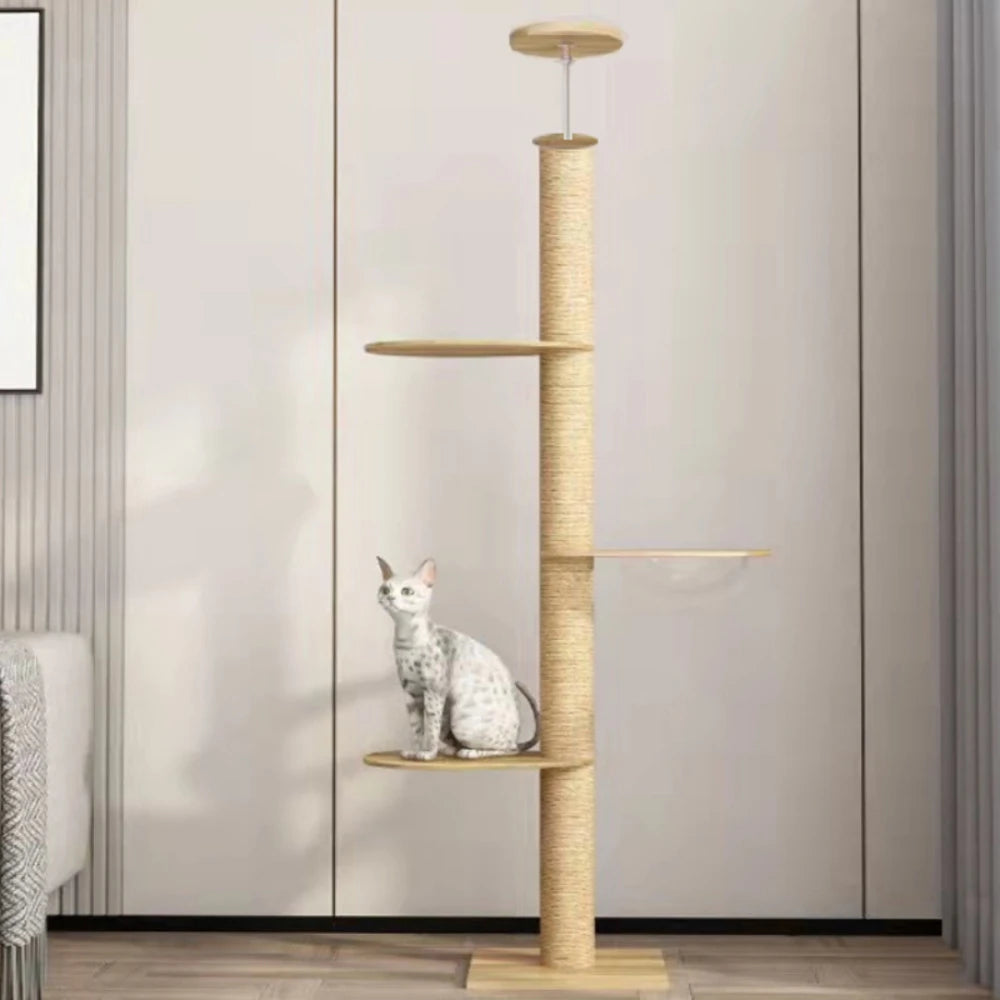 Project Description: Tongtian Pillar Cat Climbing Frame, Non occupying Cat Jumping Platform, Multi story Cat House, Integrated Stable and Thick Sisal Cat Grab Board.