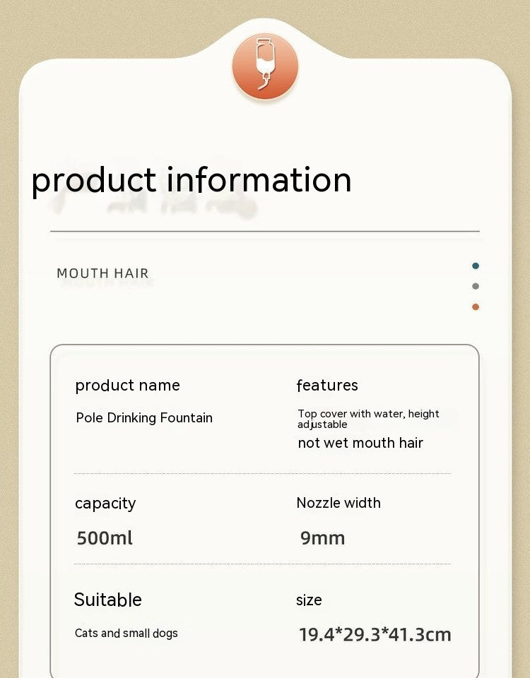 Features: Top cover with water, adjustable height, non wetting mouth hair